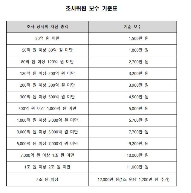 예납금 : 예납금 산정의 기준이 되는 서울회생법원 실무준칙 p.72 조사위원 보수 기준표는 아래와 같습니다.